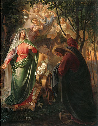 La donna tricolore metafora dell’ Italia, vestita di bianco, rosso e verde, nell’opera di Carl Oesterley dalla Divina Commedia: